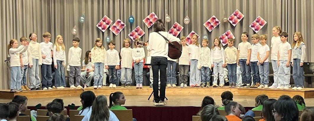 Nach wochenlangem Üben konnten wir nun unsere Lieder das erste Mal vor einem großen Publikum vortragen. Trotz Aufregung ist uns das auch wirklich gut gelungen und wir freuen uns schon auf unseren Auftritt in Schwaz.